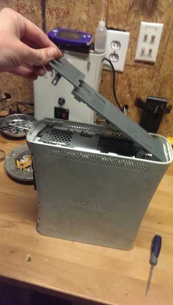 1. encima de la 360 eran que el disco duro va habrá una cubierta de plástico con un empuje de ficha la ficha y tire para arriba y esta parte debe sacar derecho