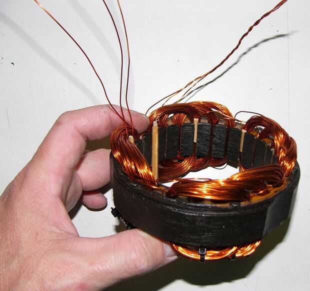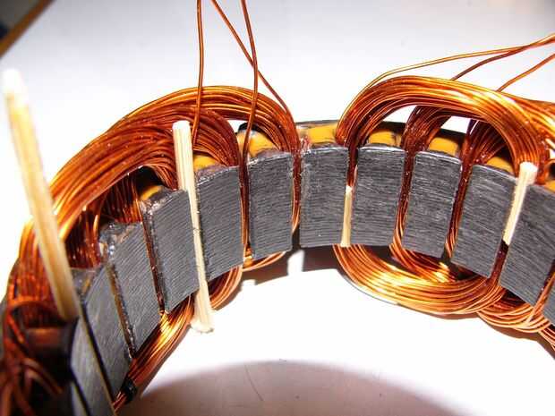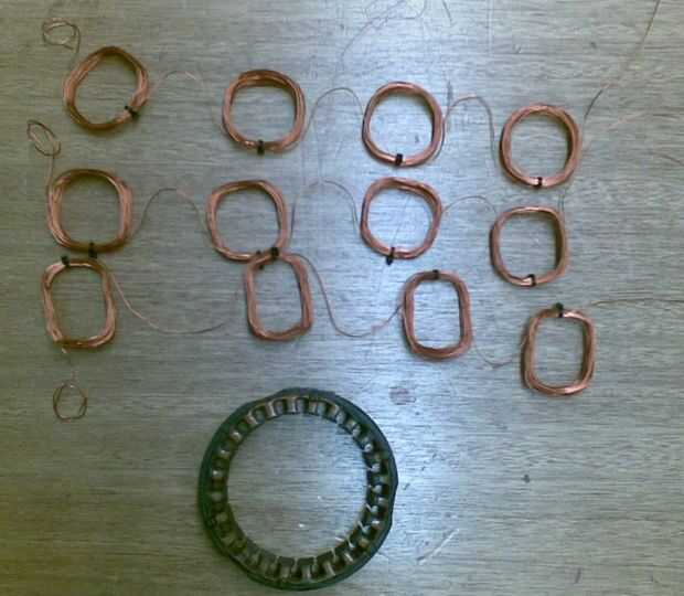 En esta 3 fase 4 bobina viento 24 ranuras de estator, comenzamos insertando la bobina 1 y salto 2 ranuras para las otras 2 fases.