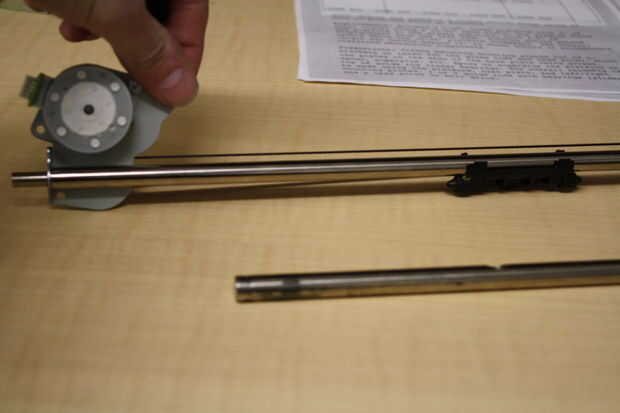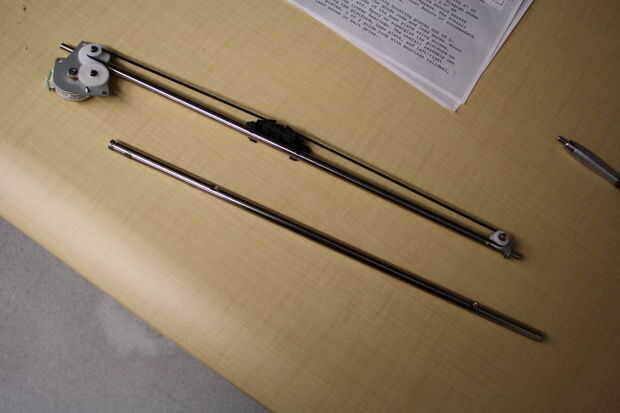 El negro guía de la varilla con uno y el uno con el motor conectado.  Estas son todas las piezas que necesitará para el movimiento de x de la máquina de cnc. Puede guardar el resto de piezas de impresora para otros proyectos.