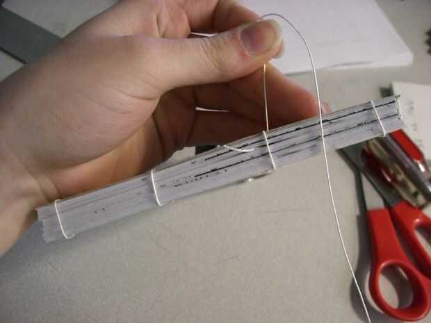 he usado este tutorial este tutorial para aprender a atar los libros de esta manera. Es muy completo, para que no repita sus instrucciones, pero básicamente cose el atascamiento de una manera particular con el hilo y la aguja. Asegúrese de que es muy ajustado y seguro. Eso es todo!