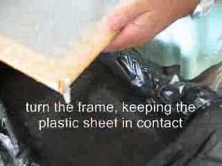 -Gire el marco, manteniendo la lámina de plástico en contacto
