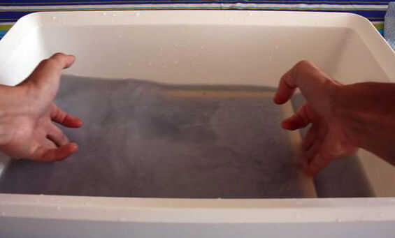 Después, sumerja los marcos en la tina. Tenga en cuenta que el molde va en la parte inferior, con la cara también hacia arriba y el barbas va en la parte superior, lado liso hacia abajo. Si no utilizas los dos cuadros como éste, probablemente no será capaz de eliminar el papel del marco. Todo tiene sentido cuando lo haces a ti mismo.