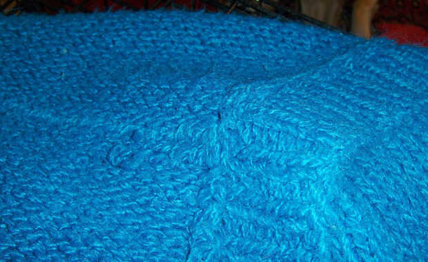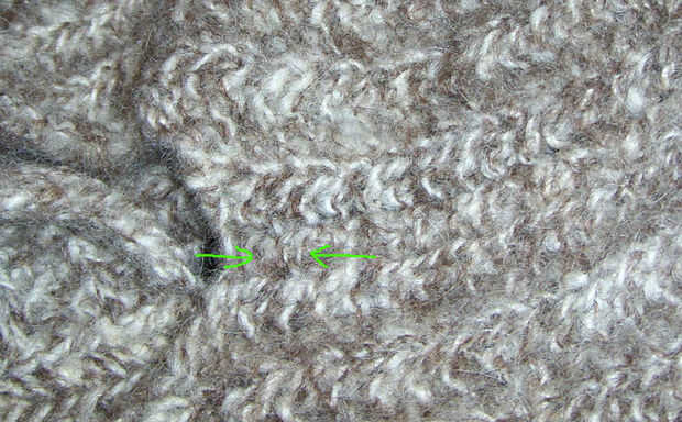 Las flechas en el cuadro 3 muestran las costuras en un chaleco de punto que era demasiado pequeño para mi hijo.