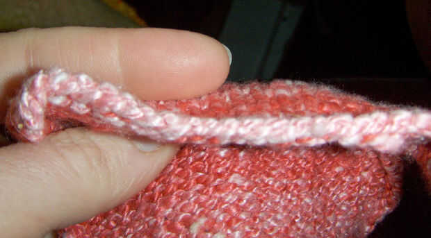Un trozo de tejido tiene un elenco en el borde (donde se inició el tejido) y un elenco de borde (donde el tejido estaba acabado). El elenco en el borde se compone generalmente de lo que parece una hilera recta de puntadas (Foto 1). El elenco de borde se ve como una serie de V (Foto 2).