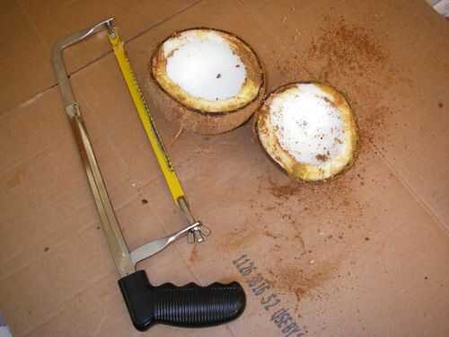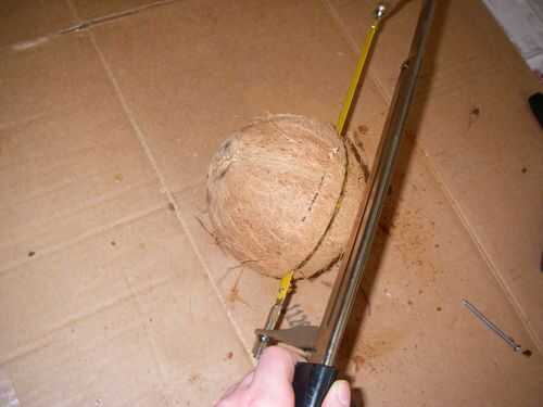 Cuando corte a lo largo de la guía que has marcado, me parece la forma más efectiva para conseguir un corte uniforme no es vio todo el camino alrededor de la cáscara, pero escoger un lugar y trabajar más profundo a partir de ahí. Mi sierra era bastante aburrido, así que funcionaba mucho mejor para cortar un surco estrecho y entonces vio directamente a través de ese punto, usando la pauta para mantener incluso la sierra. Este paso debe tomar cerca de diez o quince minutos, dependiendo de qué tan fuerte eres (y cómo fuerte es su sierra).