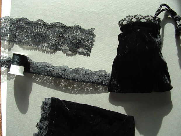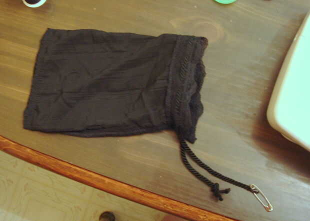 Hacer un canal de encaje para el cable del lazo. Tome un pedazo de 2 pulgadas ancho de encaje. Cortar al tamaño que desea para su bolsa, además de margen de costura. Doblar el cordón bajo en extremos, coser. Doble el cordón por la mitad longitudinalmente. Coser. El perno encaje a su bolso, por lo que es la parte plegada recta contra la tela. Coser otra vez. Usted acabará con un encaje ver por la parte superior del lazo! Usé un cable viejo que tenía puesta alrededor (que había destinado a utilizar para otro bolso que iba a hacer, pero nunca consiguió alrededor a,: P) y poner un alfiler en el extremo y roscado a través del canal de encaje que acabo de hacer. Sacar el pasador de seguridad, juntos los extremos de la cuerda del nudo y listo!