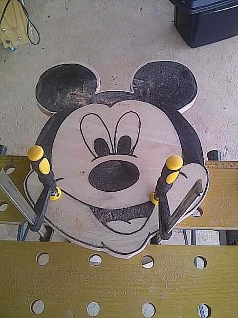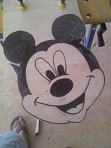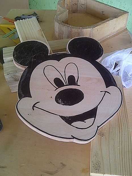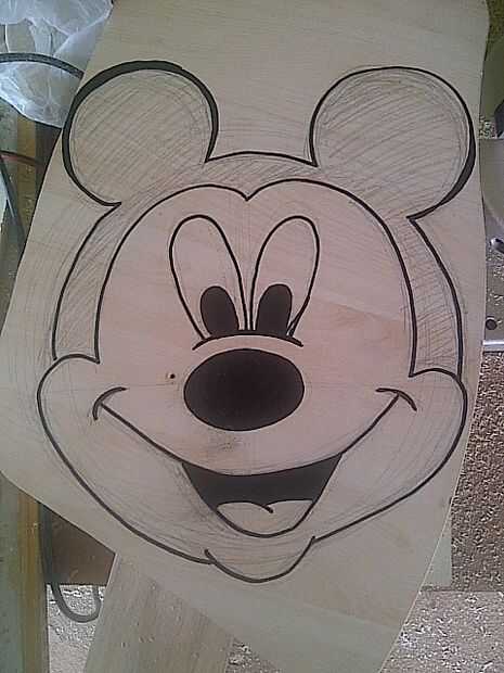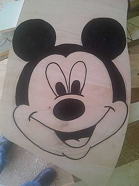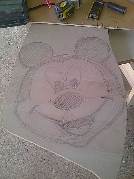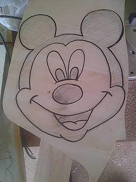 Utilizando las sobras cortes (desde el sofá), he hecho una dibujo de Mickey Mouse, a mano con un lápiz