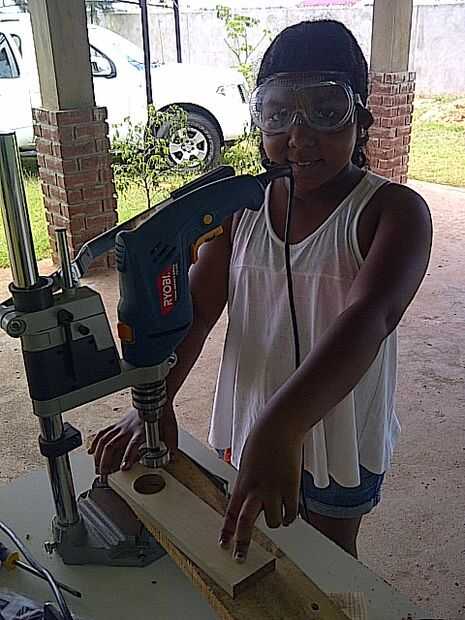 En la prensa del taladro, he hecho los agujeros de la vela (tenga en cuenta que mi hija no perforarlo y que era sólo para la foto, porque este proyecto fue su idea)