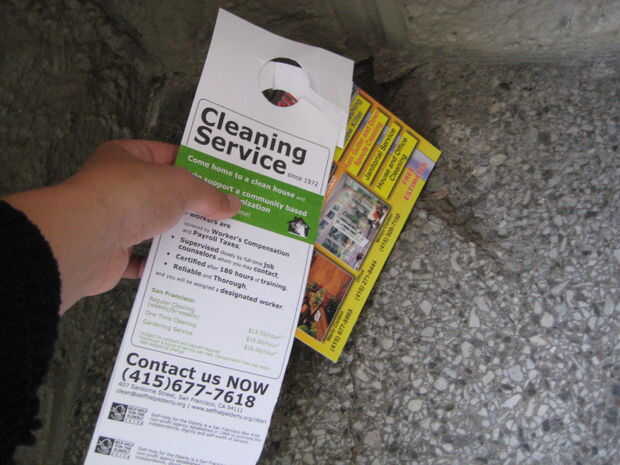 Para la basura que eres fino manejo au natural, que suele ser anuncios de papel en la manija de la puerta o la escalinata, a recogerlo.