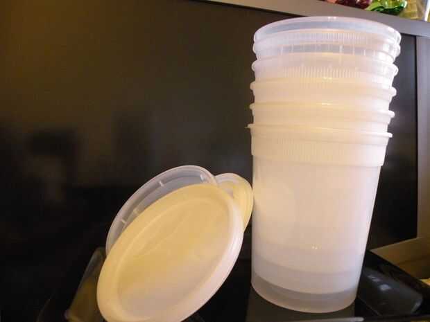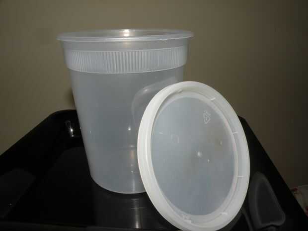 Necesitarás: -cuarto de galón plástico contenedores -tapas de envase de plástico quart -lluvia