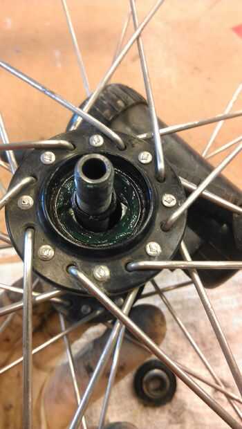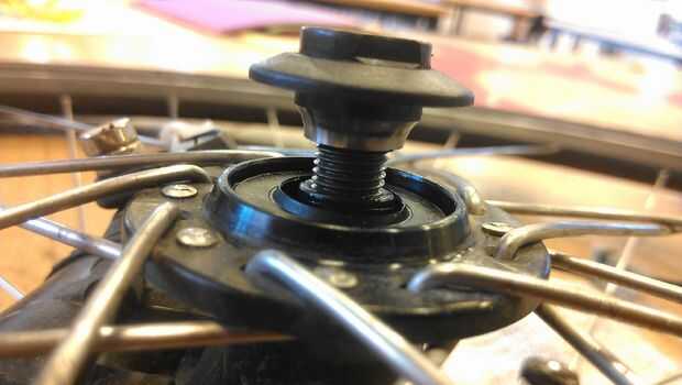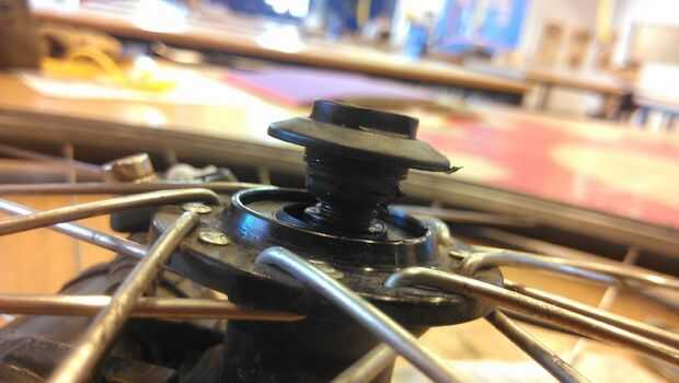 Hilo cono en allí y poner grasa en él. Lo apriete a mano hacia abajo hasta que se detenga, después de regreso de un cuarto de vuelta. Ahora estamos en la parte más dura!
