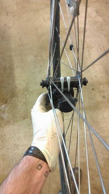 Ya que estás usando las mismas piezas y no mueva la tuerca y el cono de un lado, esto no debería ser un problema, pero es una buena idea verificar de todos modos: el eje debe sobresale el eje de cada lado aproximadamente la misma cantidad. Esto es importante porque cada lado tiene que sobresale lo suficiente para soportar el peso de las punteras del cuadro, pero si ambos lados está pegando hacia fuera demasiado mucho, el pincho no apretar sobre el armazón. Se trata menos de una preocupación si usted tiene un eje sólido y tuercas.
