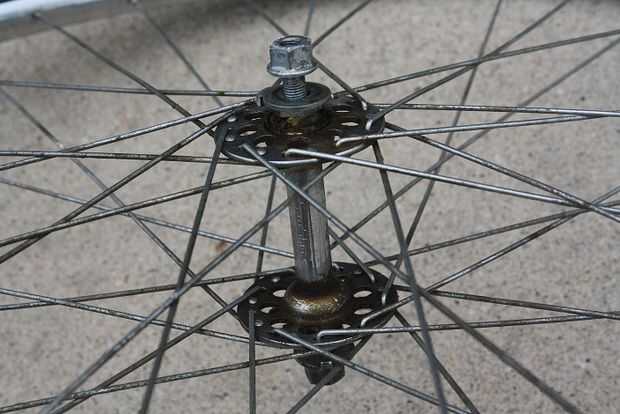 Los ejes de rueda de bicicleta moderna son las mismas. Uno puede utilizar las mismas herramientas en un eje de rueda de bicicleta de montaña como él o ella puede en un eje de rueda de bicicleta de carretera. En esta demostración, voy a mostrar cómo reconstruir el eje de la rueda delantera de una bicicleta de carretera. Hay muchas formas de reconstruir un cubo de la rueda. Descubrí este método en mis propia, utilizando herramientas simples, no especializados.
