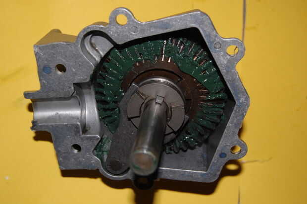 La entrada o unidad de eje y el engranaje fue quitado y limpiado el resto de gran engranaje impulsor y eje fue quitado y limpiado también. Con la otra mitad de la caja de transmisión para limpiarse, los bujes estaban buscando bonitas y limpias y ajuste con los árboles todo estaba listo para ser montado y adoba con grasa nueva. Craig recomienda usar una grasa había llamada Cleuber lubricante pero él no recordaba que usó el número. Llamé al proveedor local donde obtiene de y que no tenía ningún tubos individuales en stock y me dijeron que necesitaba para un caso como una orden mínima de compra. No iba a gastar más $250,00 para un caso de grasa cuando necesitaba sólo unas onzas así que fui a la siguiente mejor opción; la tienda de carreras locales y me consiguió un tubo de grasa sintética compuesto rojo de Lucas Oil por $6.00. Más que suficiente para volver a empaquetar esta "cajita" de 4 a 6 veces.