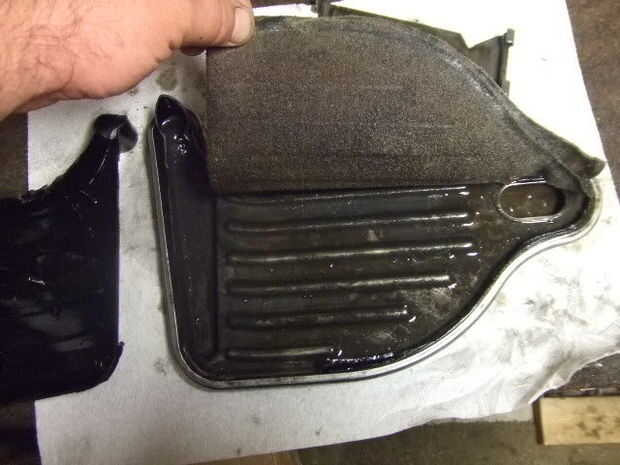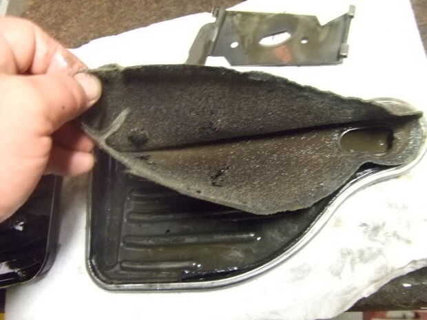 Agrietado Abra el filtro con un martillo y cincel: sólo algunos barro fino del embrague, no hay partículas metálicas. La tercera foto muestra algunas "escamas" negro pegados entre los fieltros... Lo sé que es ya, pero me sería estar adelantando: wink: