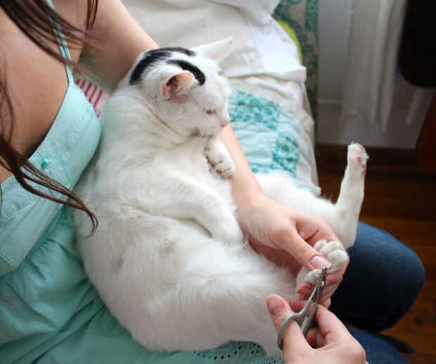 A recortar los pies detrás de la misma manera como el frente. Las garras sólo complicadas recortar son las garras de "pulgar" en las patas delanteras. También conseguirlos hacia fuera donde usted puede cortarlas deberás usar toda la mano y ser un poco ambidiestra. : D