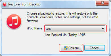 Después de hacer clic en el botón de restaurar copia de seguridad, verá un cuadro de diálogo emergente. Seleccione el nombre de tu iPhone en el menú desplegable y afectó a restaurar en el cuadro de diálogo. A continuación, iTunes empezará a restaurar tu iPhone con la copia de seguridad. Después de restaurar el iPhone con el iTunes, va a volver los archivos a tu iPhone nuevo. Si no actualizas la copia de seguridad del iPhone antes de que los datos se perdió, hay pocas posibilidades que usted puede recuperar los archivos. Si desea extraer ciertos archivos sin restaurar la copia de seguridad entera, puede que desee probar Leawo iOS recuperación de datos, como este software permite a los usuarios recuperar archivos borrados por separado.