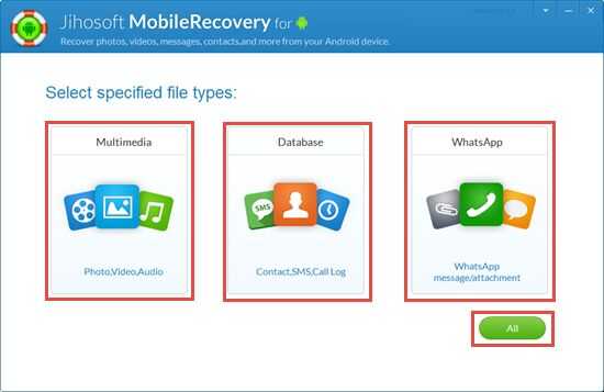 Después de la instalación, ejecute la aplicación en tu PC. Podrás ver la interfaz mostrará cuatro opciones: "Multimedia", "Base de datos", "WhatsApp", "Todos". Toque uno de acuerdo a su propia demanda.
