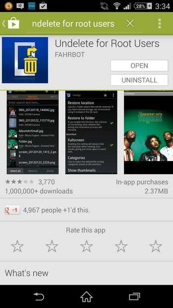 Si tu dispositivo Android está arraigado, puede utilizar la aplicación llamada Undeleter recupera archivos y datos para recuperar los archivos borrados de tu tarjeta SD de tu teléfono Android o tablet. Si no estás seguro si tu Android enraizados o no, siga adelante y compruebe primero este artículo: http://www.androidcentral.com/is-my-phone-rooted ahora, siga los 3 pasos sencillos para restaurar los archivos:
