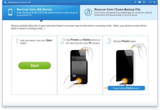 Para los usuarios de iPhone 4s/5/5s / 5c, usted puede hacer clic en el "Start Scan" directamente para explorar tu iphone