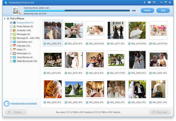 Paso 2: Análisis iphone haciendo clic en el botón "Start Scan"