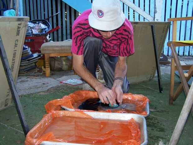 Después de frotarlos, entonces tomar del contenedor de donde estaban y ellos encestar un par de tiempo, para enjuagar cualquier cosa a la izquierda, luego colocarlos en otro recipiente, vuelve a llenar con agua limpia. USO NO solventes, utilice únicamente agua limpia.