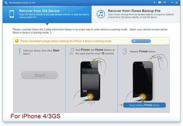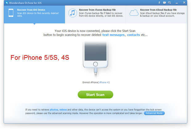 Tras descargar e instalar iPhone recuperación de datos, ejecutar en su computadora. Luego conecta tu iPhone al ordenador con un cable digital. La captura de pantalla te muestra la diferencia entre iPhone 5/5s o el iPhone 4S y iPhone 4 o iPhone 3GS.