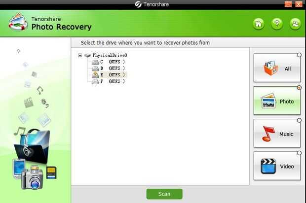 Seleccione la opción "Fotos" y haz clic en el botón scan