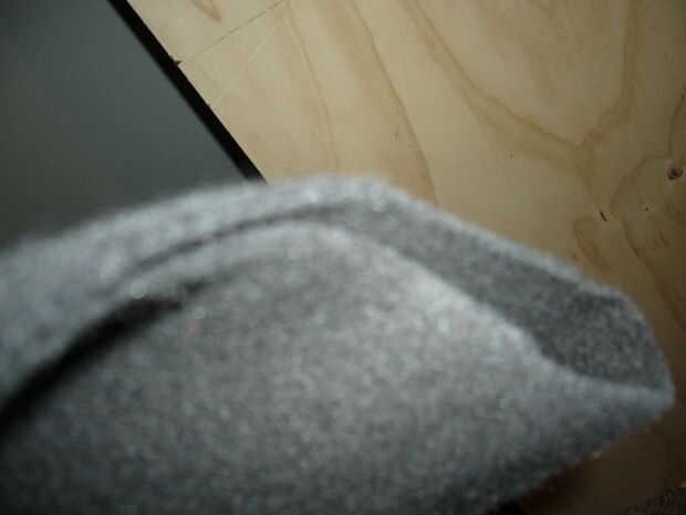 después se corta, doblar un lado y rocíe hacia abajo con su adhesivo en aerosol. No tengo fotos de esto porque tienes que trabajar muy rápido, tiene tal vez un minuto hasta el adhesivo se seque. aerosol hacia abajo y luego ponen su respaldo, trabajando las arrugas y tal hacia fuera y hacia el borde.