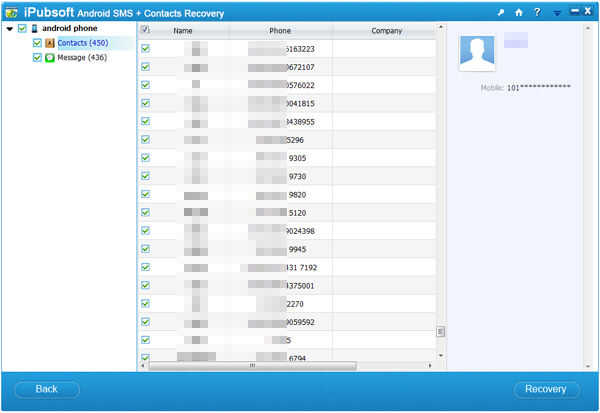 Abierto la depuración de USB, el programa detecta automáticamente el teléfono y mostrar su información sobre los parámetros de la interfaz principal. Haga clic en el botón de "Start Scan" para que el software realice una san rápido pero profundo en su teléfono. Cuando la exploración termina, todos los archivos contenidos en el teléfono LG, incluyendo mensajes de texto eliminados, se encuentran y exhibido en categorías.
