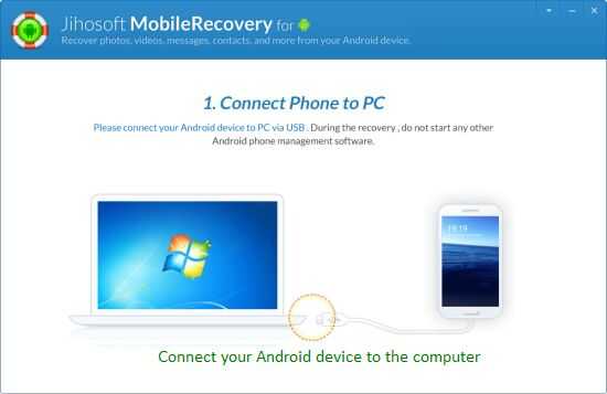 Conecte el dispositivo android a la pc. Después se identifica el dispositivo, haga doble clic en el icono para ejecutar recuperación de teléfono Android de Jihosoft. Detectará automáticamente el dispositivo. Mientras tanto, por favor, mantenga el dispositivo abierto.