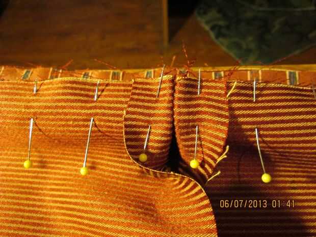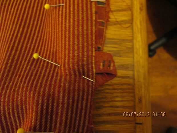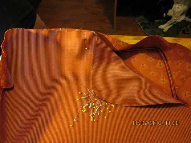 La parte de atrás se hace en dos piezas separadas para que el amortiguador puede ser insertado luego la costura centro cosida encima de mi mano. Recuerda añadir los vínculos en estas costuras. Debe tener un panel superior y uno inferior del panel cada vuelta atrás donde se encuentran en el medio.