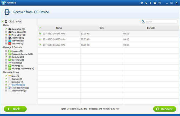 Paso 2: Analizar para encontrar notas de voz borrado iPhone
