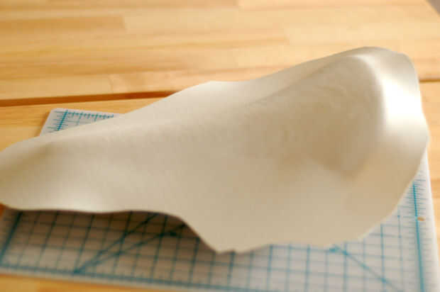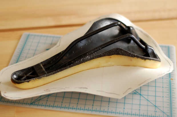 Empuje la cubierta hacia el asiento en la parte superior para fijar el material en su lugar, pero no comience a envolver alrededor de los bordes aún.