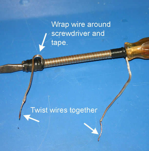 Envuelva firmemente el resto del alambre alrededor del eje del destornillador casi hasta el final. No importa qué dirección viento el cable y se puede volver sobre la primera capa si terminas con el alambre más de destornillador. Dejar libres aproximadamente de 2 pulgadas en este extremo y que hasta el destornillador como usted lo hizo en el otro extremo de la cinta. La cinta sólo impide que relajarse a sí mismo y entonces tienes que empezar.