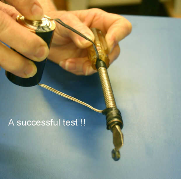 Tenga en cuenta que mientras se sostiene el alambre a la batería, corriente que fluye a través del cable. Esto crea calor en el cable, así que manténgalo en la batería durante sólo unos segundos, justo lo suficiente para que la tuerca de daña manera y no se caiga. Sólo conseguirá caliente al tacto, ya que es de sólo 1,5 voltios y se ejecutará la batería si tienes el cable a la batería demasiada.