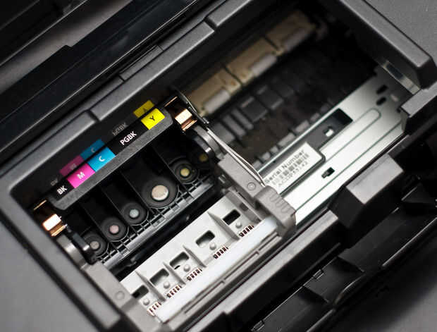 Algunas impresoras baratas la cabeza conectada al cartucho de tinta, pero los cartuchos son mucho más caros y la calidad es peor. Mi Canon IP4600 es una impresora no es muy cara, pero con una buena calidad y CD impresión demasiado, me encanta. Cuenta con 5 cartucho que se puede extraer sin mover la cabeza, ya he quitado en la imagen.