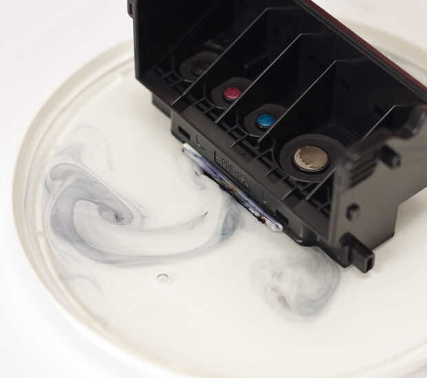 Poner las cosas en remojo por un rato... El agua para disolver la tinta seca. Mientras tanto de goma tubo trate de agua de la placa de la succión en las boquillas. Hacer que necesariamente no chupar el tubo, es mejor usted mantener en su lugar, presione los lados, cerrar el extremo abierto y dejarlo apesta para usted reasumir su forma original. Ahora usted puede esperar una hora, pero si tienes tiempo puede dejar toda la noche.