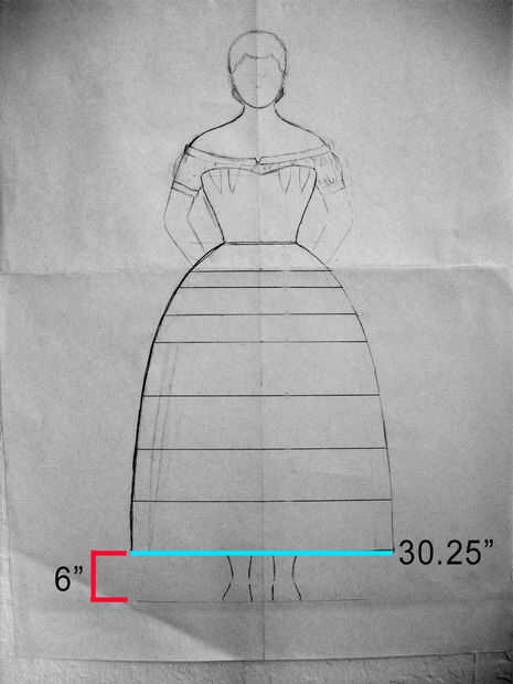 Ahora puede dibujar la forma de la falda del aro! Siempre y cuando se inicia en cada extremo de la línea que dibujó para la cintura, acabados en cada extremo de la línea que dibujó para la base y es simétrico eres oro. Me aseguré que mi forma era exactamente igual en ambos lados dibujo por un lado, y luego copiarlo a otro lado doblando el papel en mitad de la línea central y lo seguimiento. Cualquier forma de dibujar es exactamente lo que obtendrá, así que toma algún tiempo para obtener una forma que te gusta. Quería una forma de tipo de campana muy del 1850 temprano justo antes de aros fueron inventados, cuando capas múltiples enaguas dieron de mujeres faldas una forma como una u invertida.