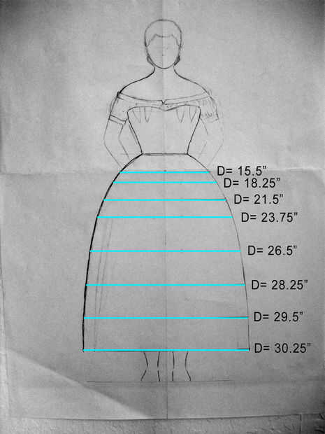 cosí hasta mi aros personalizados redactados en TechShop. Le mostré cómo elaborar un patrón personalizado aro falda aquí. Usted debe haber terminado con un patrón que se ve algo como la segunda imagen de arriba, además de una lista de la circunfere
