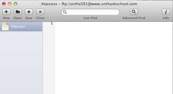 Como se puede ver, mi archivo .htaccess está en blanco. Ustedes pueden tener unas pocas líneas de código ya presente, como en el ejemplo siguiente. No dude en ignorar esto por ahora.
