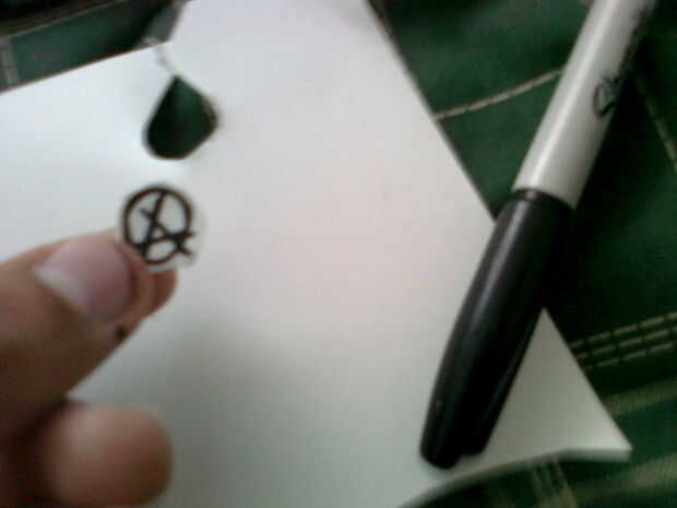 Pintar la cubierta con su marcador (s) y luego dibujar algo en el papel adhesivo para que más adelante podría pegarlo en la cubierta.
