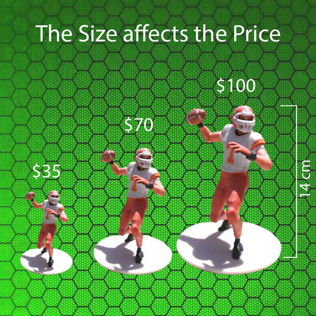 Naturalmente cuanto menor sea el tamaño, menos el costo de material, por lo tanto, el menor costo. Elegir sabiamente y si tus estampas 3D fueron para las pruebas, usted podría considerar conseguir un modelo pequeño antes de grande.
