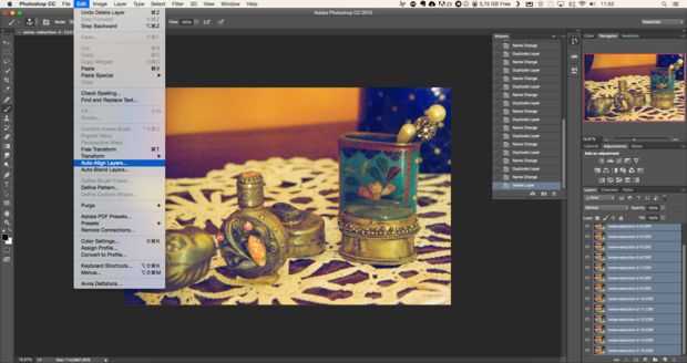 Seleccione todas las capas (haga clic en la primera capa, Mayús + clic en la última capa) [imagen 1], haga clic en Editar (en el menú superior), haga clic en alinear capas automáticamente [imagen 2], haga clic en aceptar [imagen 3]. Debido a la alineación de miss en proceso de rodaje tienes que recortar algunos píxeles transparentes en la frontera de la imagen, utilice la herramienta Recortar para.