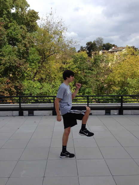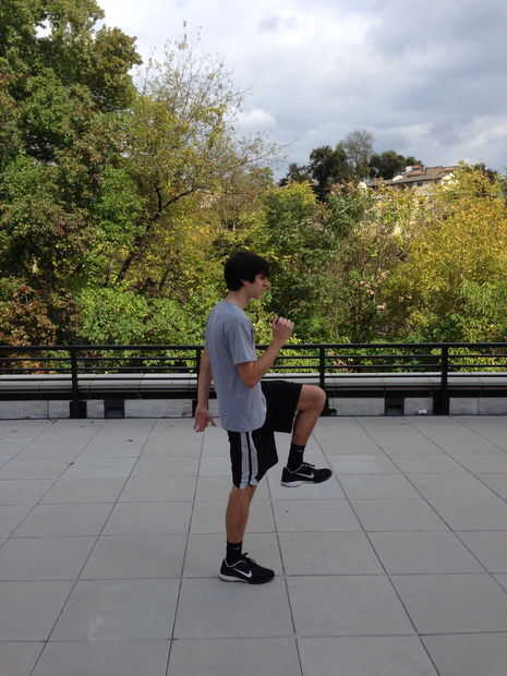 1. correr hacia delante llevando las rodillas hacia tu pecho cada vez.