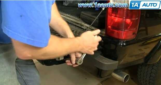 Con una broca Torx T45 y el trinquete, retire el tornillo Torx que sujetan el cable a la puerta trasera. Esto es más fácil con cierta holgura en el cable. Usted puede apoyar la puerta trasera para que haya cierta holgura en el cable o simplemente levante el portón trasero con su muslo.