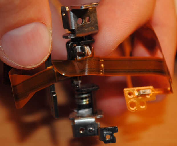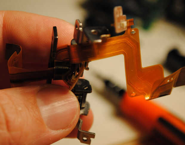G.Move 2 interruptores de cable viejo al nuevo uno (soldador con cabeza pequeña). Tenga cuidado de no derretirles o quemar el cable nuevo. Un interruptor de apagar la pantalla LCD cuando está cerrado, el voltear la imagen cuando la pantalla está invertida. Tengo ninguna idea lo que pasa que si no pones los interruptores, supongo que tu LCD será permanentemente (cuando la cámara esté encendida), no importa si se ha abierto o cerrado y vaciar la batería más rápido; la imagen no se mueva al activar la pantalla boca abajo.