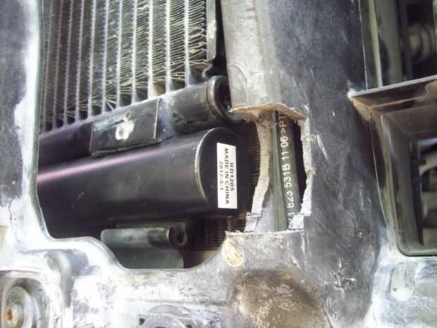 Para reemplazar esto usted tendrá que tomar el frente tope apagado. Esto es un paso fácil pero bastante larga y asegúrese de quitar todos los tornillos. También si no quieres tomar todo completamente aparte puede hacer cortado y perfore agujeros en el parachoques' interno' justo para hacer la vida más fácil y así que usted puede tener acceso más rápido a la AC receptor secador. Mira las fotos más abajo. Esto no debería ser tan malo.