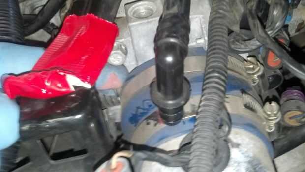 hay una manguera con un extremo de plástico blanco que tiene una traba que tiene que ser empujado hacia fuera de ambos lados de la parte inferior de este tubo... las posibilidades son que el plástico es tan frágiles que se rompen al hacer esto... Si por lo que no sabe mal, lo hizo para mí también, y era real cuidado cuando traté de esto... Si rompe malas noticias este tipo particular de pinza no es disponible en las tiendas Autozone y piezas... Artículo único de la stealership... Usé algunos JBWeld y cinta roja para "arreglar" mi clip. También la manguera que se conecta a esta parte también es frágil y propensa a romper/romperse en dos. Incluso puse una nueva parte y se rompió por la mitad cuando he intentado volver a conectar este tubo = ser muy cuidadoso.