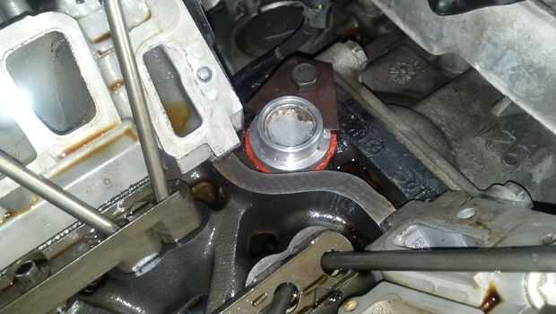 Rascado/Limpie toda la restante forma de material de Junta los lados del motor y colóquese del motor a que se dará cuenta de un objeto en forma de cilindro redondo que parece un distribuidor iba. Esta es su eje de accionamiento de bomba de aceite y, como sus empaques de admisión inferiores son propensos a fugas, si no tomar esta hacia fuera y reemplazar el O anillo usted ejecutar la posibilidad de tener A fugas problema que será imitar el actual fugas problema nos está fijando. para quitar esto es perno de 10mm o 13mm y una vez que se quitan el perno y el soporte que desea agarrar tu canal cerraduras subirse un buen agarre y giren y jalarlo hacia arriba al mismo tiempo eliminar forma el motor. Notará que tiene un poco de Junta líquido endurecido maker junto con el anillo O, lo que hace esta cosa tan difícil de sacar. una vez que limpie esta parte y reemplazar la junta tórica y aplicar algunos fabricante de pasta de juntas (yo usé rojo Junta maker de alta temperatura para esta parte) re instalar esta parte hacia el motor (porque ahora tiene un agujero gigante que va directamente a su aceite de coches y no desea nada llegar) vuelva a colocar el soporte y apriete y apriete el perno de 10mm o 13mm hasta 27 pies libras